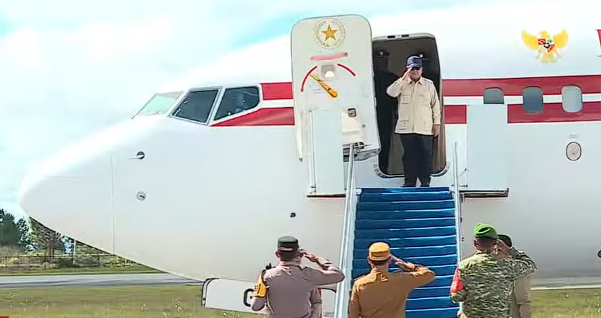 Setelah meninjau korban banjir di Tapanuli Tengah, Sumatera Utara, Presiden Prabowo bertolak menuju Bandara Alas Leuser, Kutacane, Aceh Tenggara.